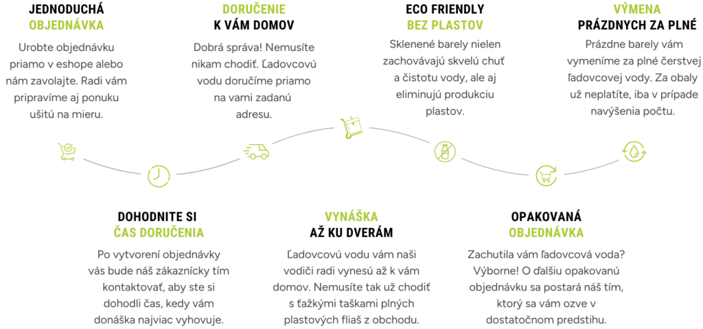 Objednajte si pravidelné doručenie vo vratných sklenených bareloch – ekologických, elegantných a pripravených na okamžitú konzumáciu. Pri ďalšej dodávke vám prázdne nádoby jednoducho vymeníme za plné.